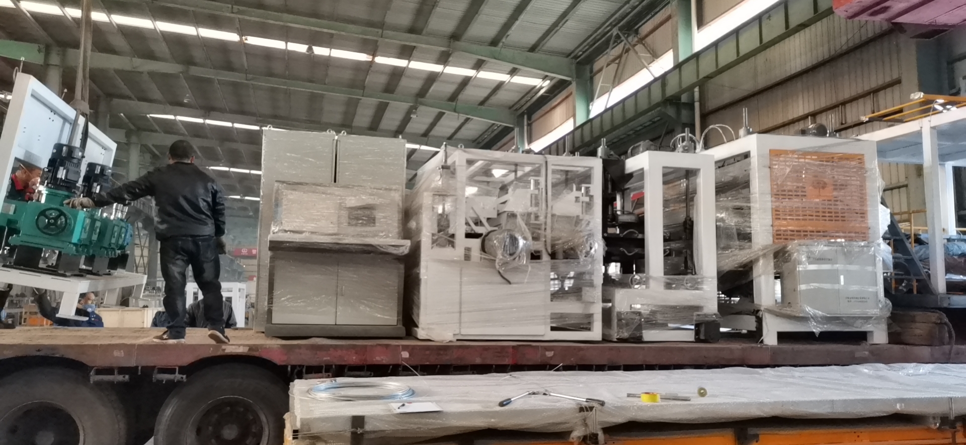 12月12日下午,河北邯鄲客戶訂購(gòu)的一條85/250二氧化碳發(fā)泡擠塑板生產(chǎn)線在公司生產(chǎn)制造車(chē)間內(nèi)檢驗(yàn)合格裝車(chē)發(fā)貨。