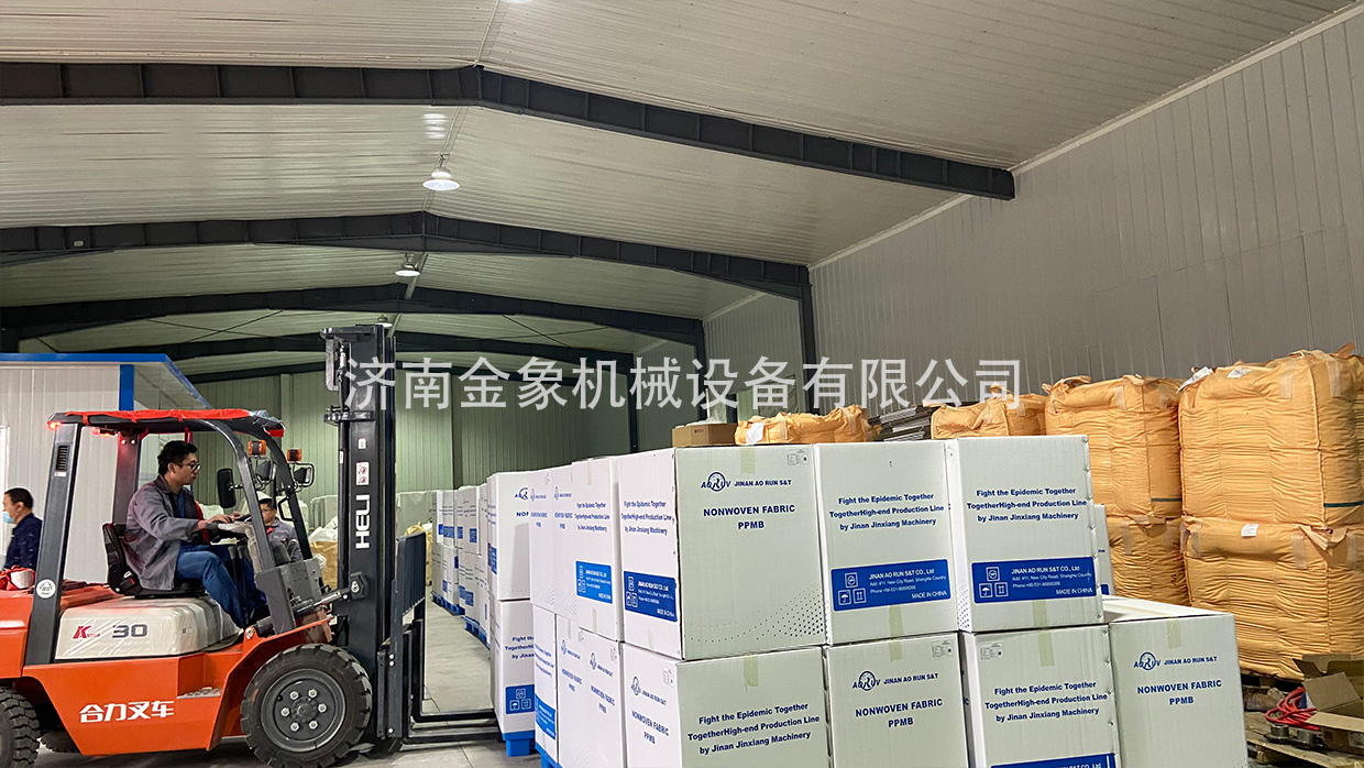 作為國內(nèi)水駐極熔噴布供應(yīng)商代表之一,金象機械生產(chǎn)研發(fā)的水駐極熔噴布成功銷往韓國,為當?shù)胤酪呶镔Y生產(chǎn)提供了幫助,以下為發(fā)貨現(xiàn)場:
